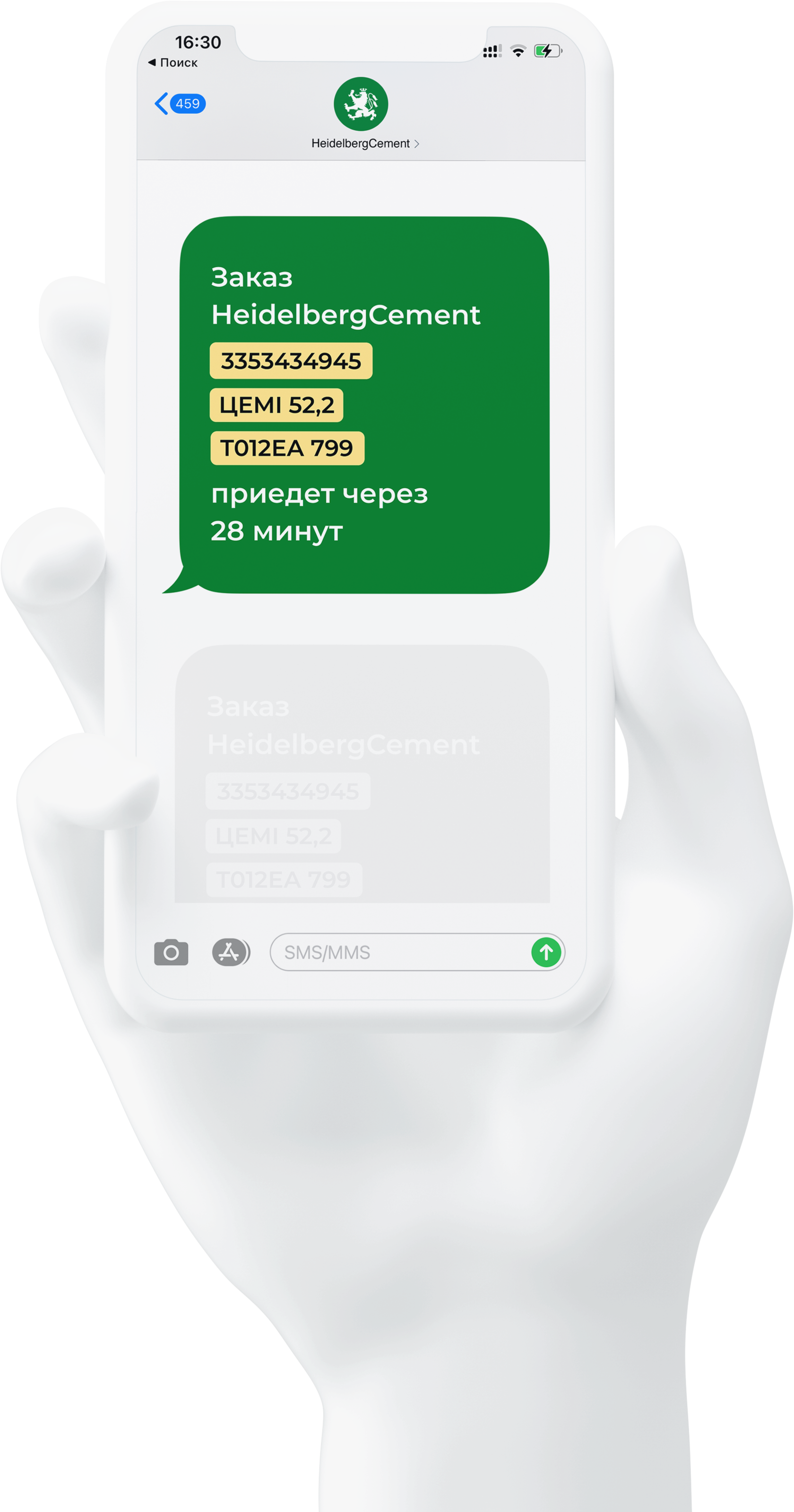 Как только загрузим и отправим машину, мы пришлем сообщение с номером заказа, маркой цемента и номером машины.